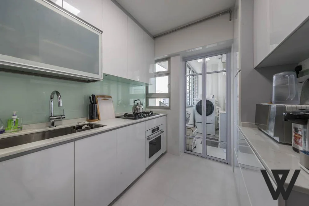 My original floor plan as below: This design is one of the most popular designs among singaporeans; In fact, the housing board has already decreed that all new btos from 2018 will have open kitchens only. Hdb 5 room resale industrial design open kitchen concept bayti design pte ltd kitchen design open kitchen design transitional kitchen design. The visual perspective is further enhanced with the highly reflective white quartz countertop as well as the black mirror backsplash, the glossy white cabinet fronts, and the linear lines of long white tiles.